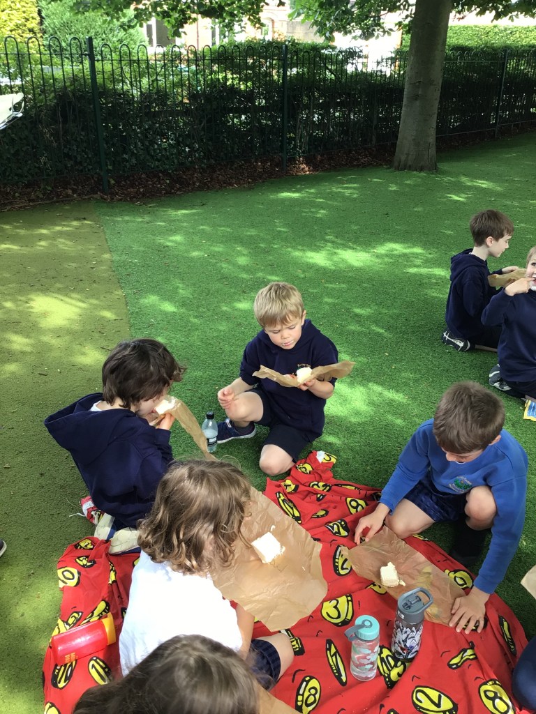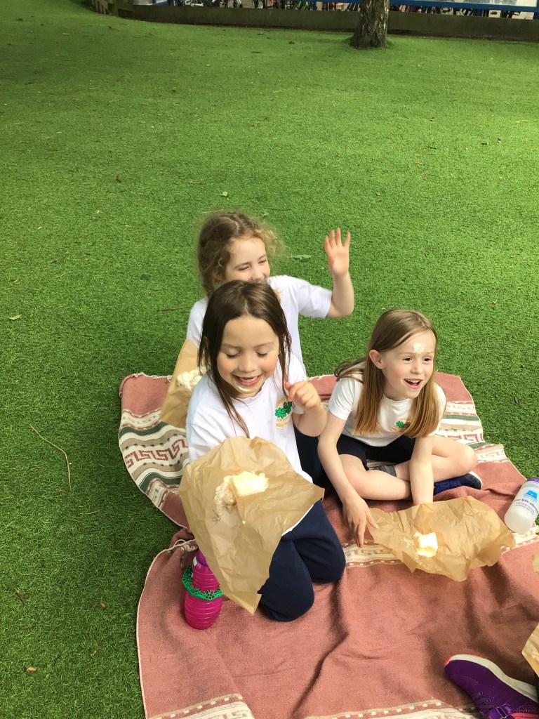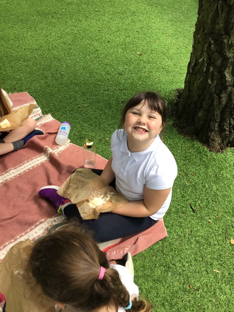 We made the most of the day and enjoyed a plastic free picnic with 1D. We reused the paper we had wrapped our sandwiches in to eat ice cream from!